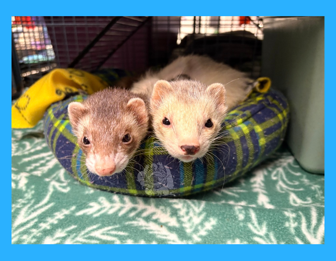 Meet Steve and Leda! Our longest-term residents who have been patiently waiting for their forever home for over a year. Their anniversary was on January 6, 2026. These two sweet ferrets have so much love to give and are ready to finally be someone's "happily ever after". Steve has insulinoma and does great with his pred and soupies! Leda is his constant companion, and together they make the perfect duo!